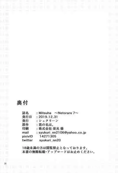 (C97) [Syukurin] Mitsuha ~Netorare 7~ (Kimi no Na wa.) [English] [Shiromaru]