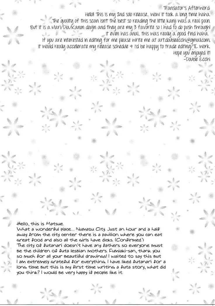 (BokuLove! Sunshine in Numazu) [Fiance Tank, Trifle (Matsue, Yukue Fumiaki)] Numazu Meibutsu Futanari Yurisai (Love Live! Sunshine!!)