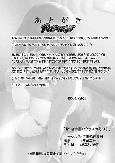 Metsuki no Warui Class no Anoko Pics [宇宙船庄司号 (庄司二号)] 目つきの悪いクラスのあの子 [英訳]